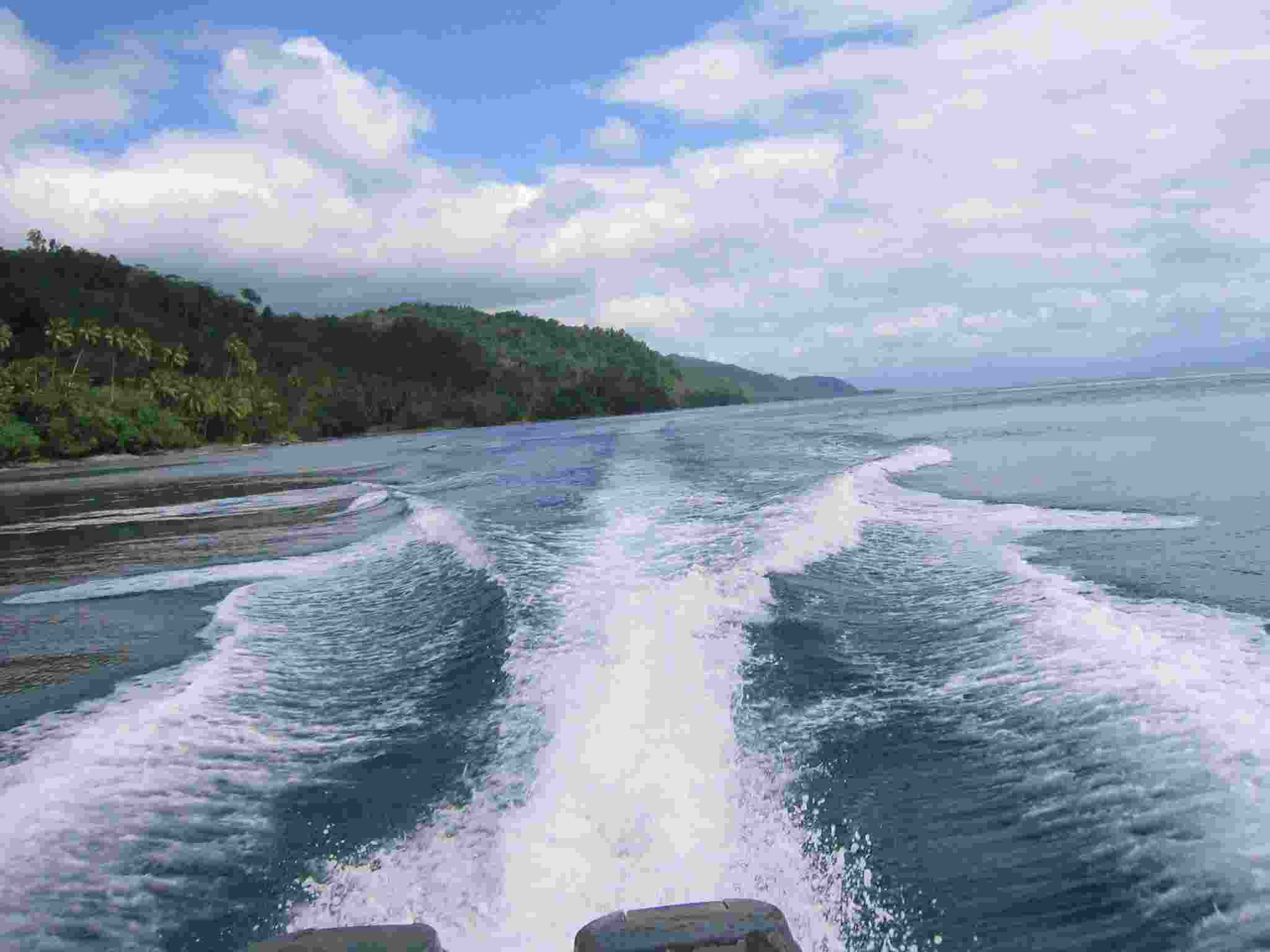 Boat day trips from Wagawaga bay. The lodge boat with